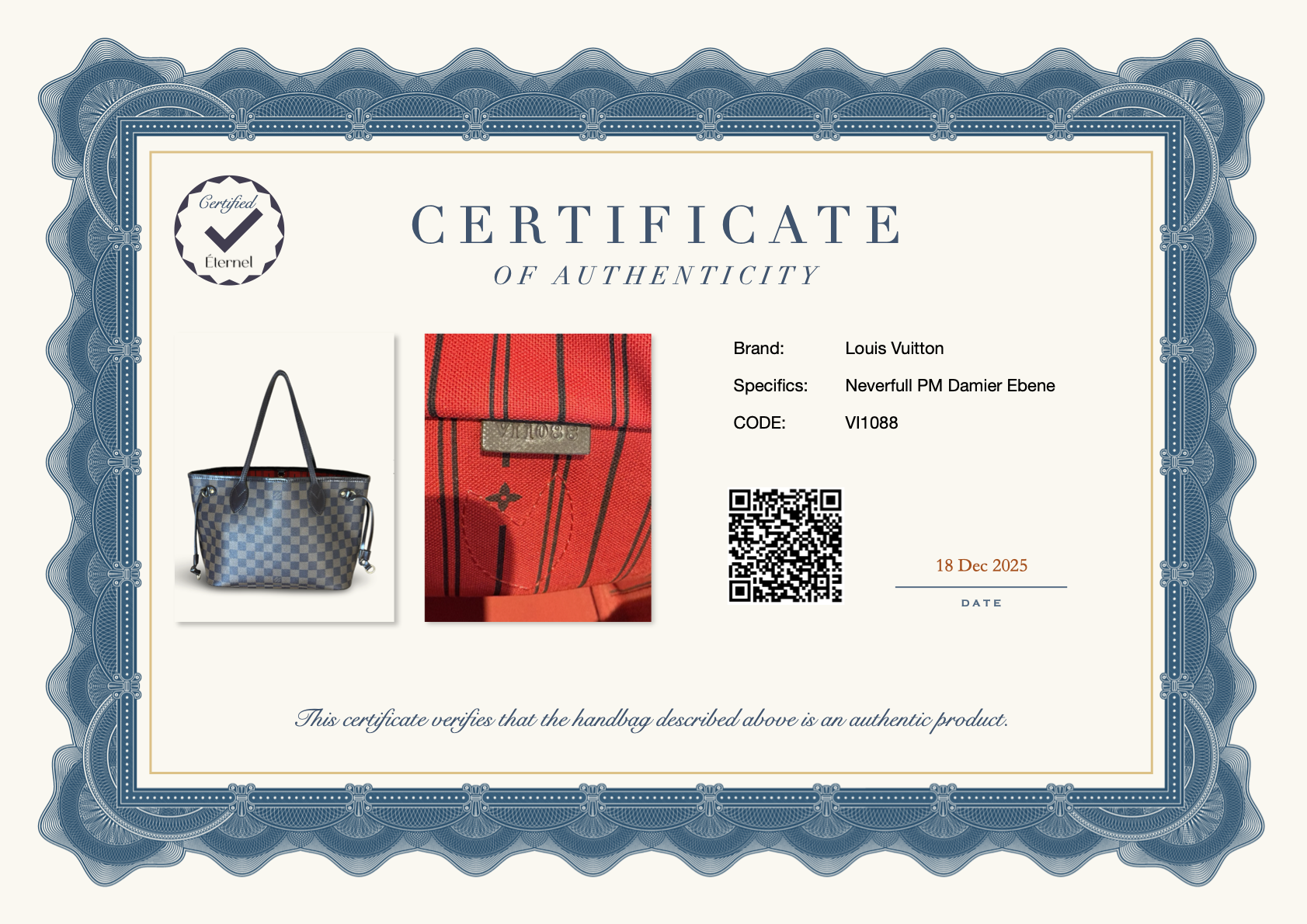 Every item sold by Éternel is 100% authentic.